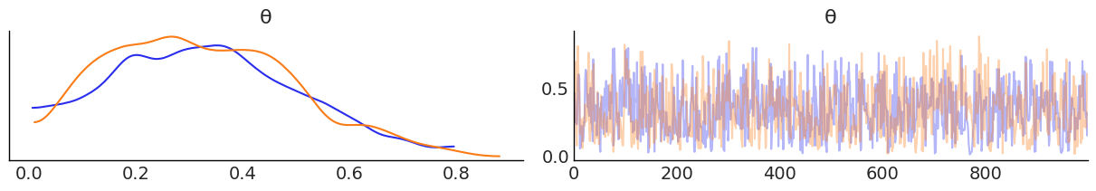 Auto-assigning NUTS sampler... Initializing NUTS using jitter+adapt_diag... Multiprocess sampling (2 chains in 2 jobs) NUTS: [θ] 100%|██████████| 3000/3000 [00:00<00:00, 3695.42it/s]
